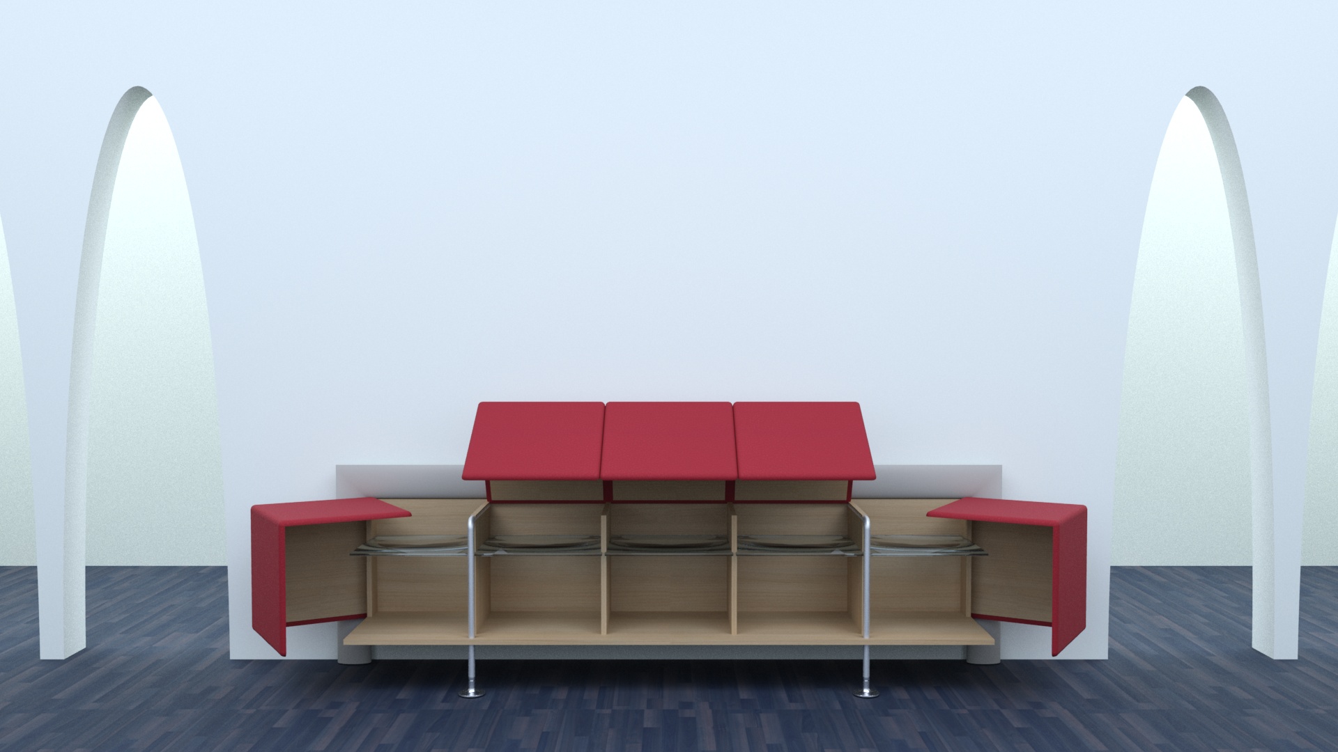 L'originalité du Cubo s'exprime aussi dans son piétement atypique : à l'arrière une poutre à section elliptique, à l'avant 2 pieds-vérins. Il ne faut jamais poser d'objet sur Cubo, même pour le Duo.