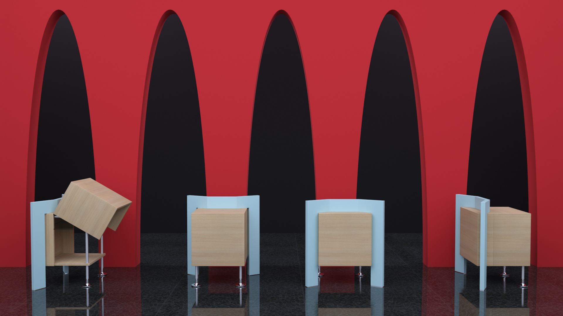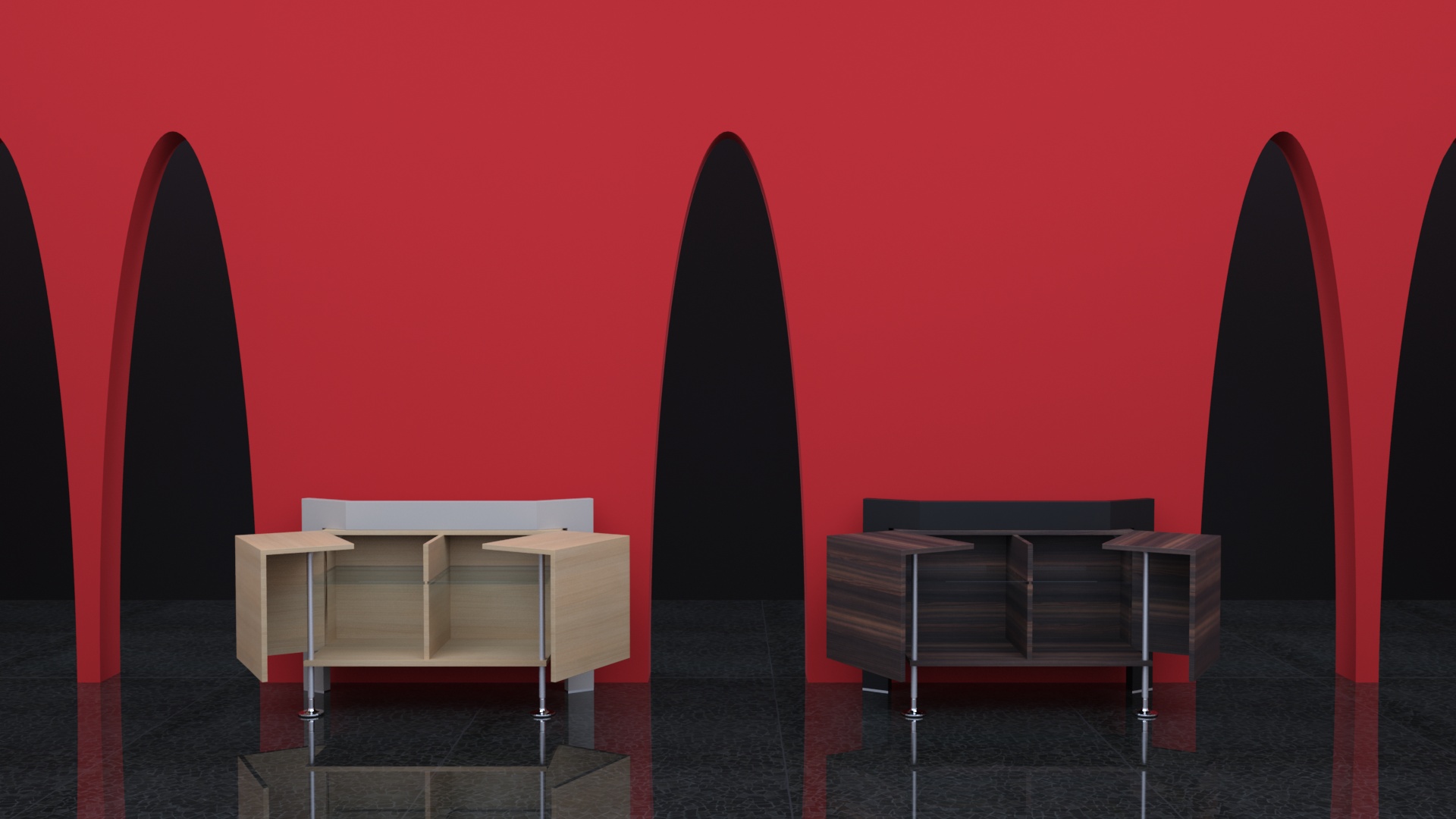 Le Cubo est une déclinaison du Cubo Smouth : le single est un meuble d'appoint de salon avec un cube en bois, qui se transforme en capot, quand il est ouvert.