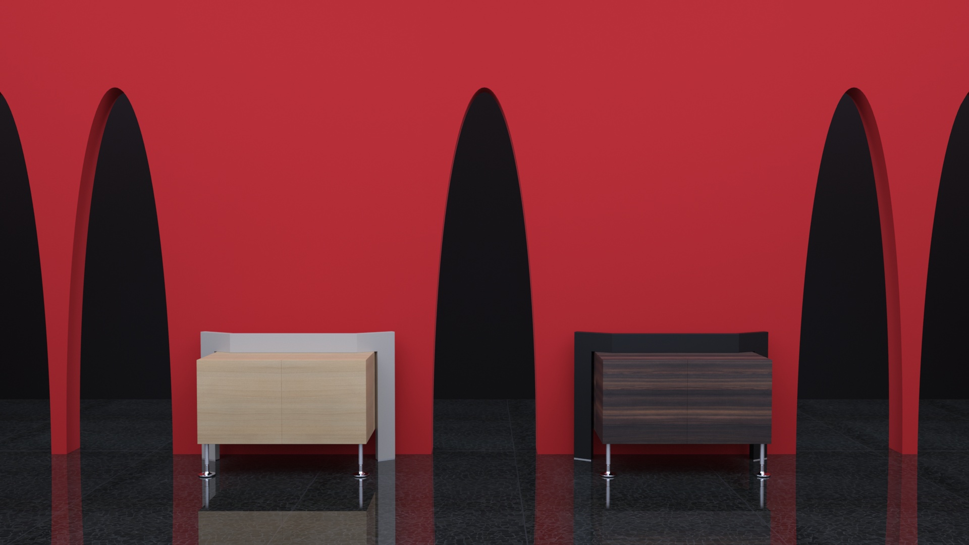 Le Cubo Quatro valorise le graphisme de l'essence de bois, la profondeur de la laque et le reflet de ses chromes, avec sobriété et charisme.