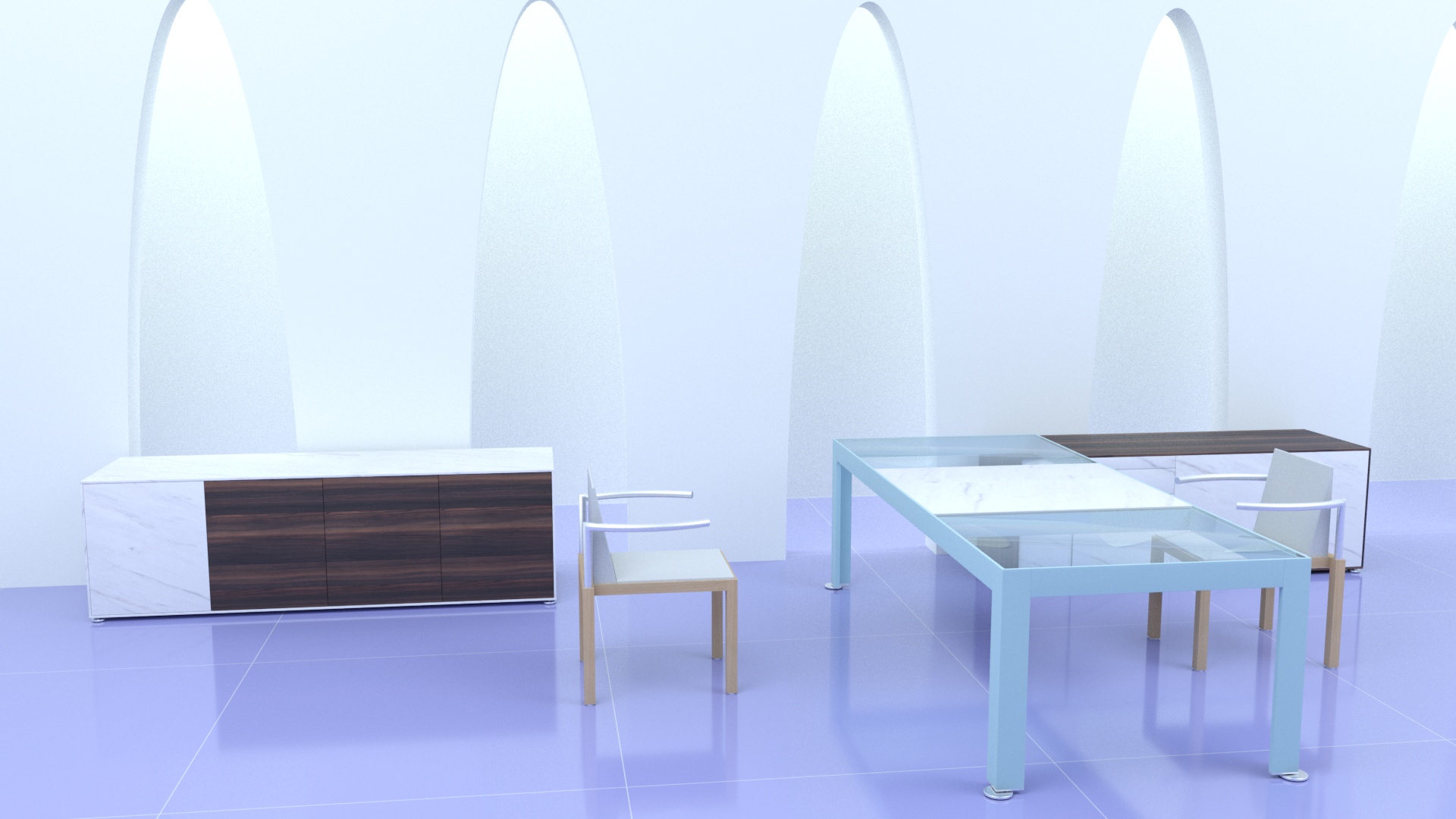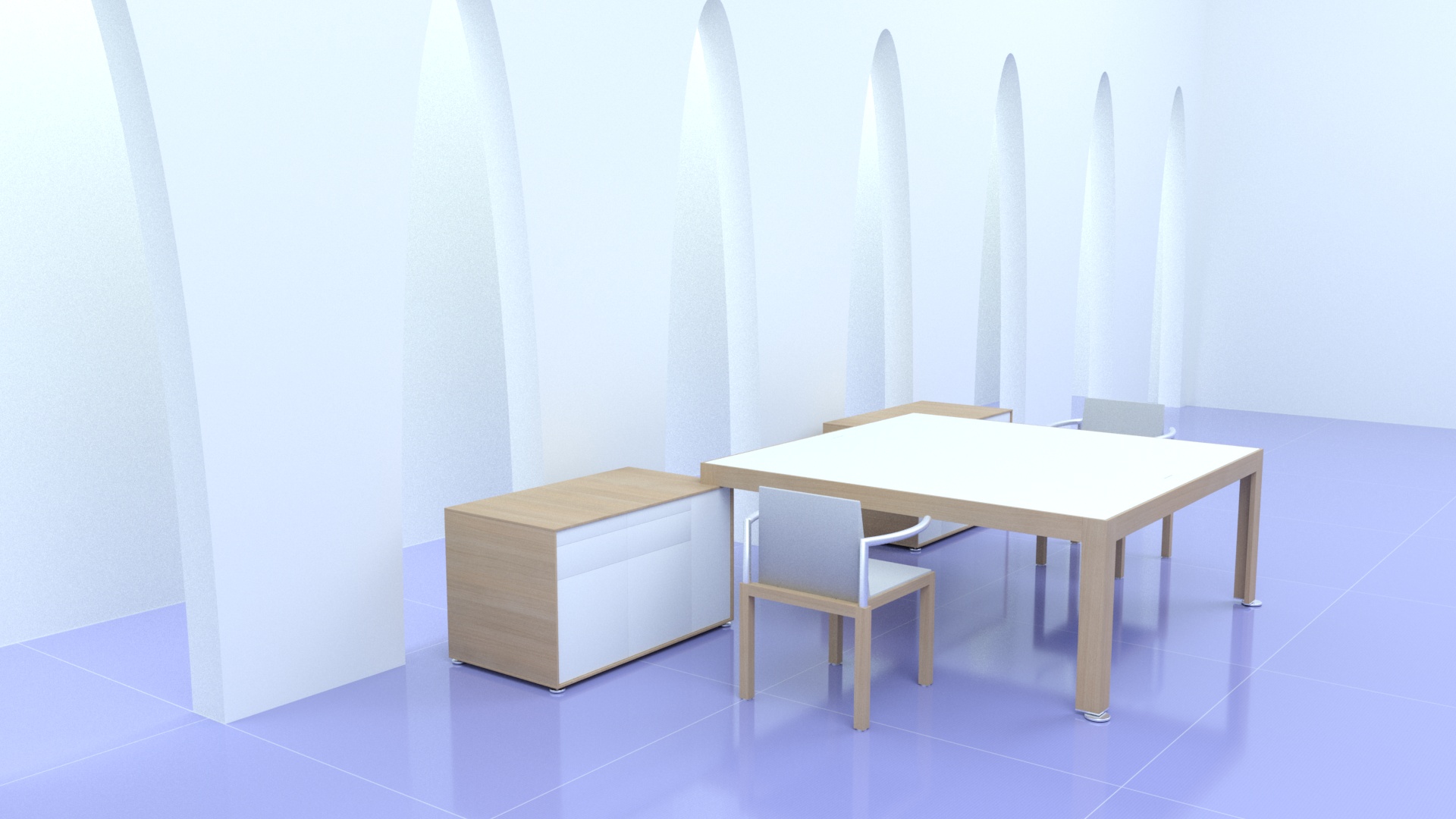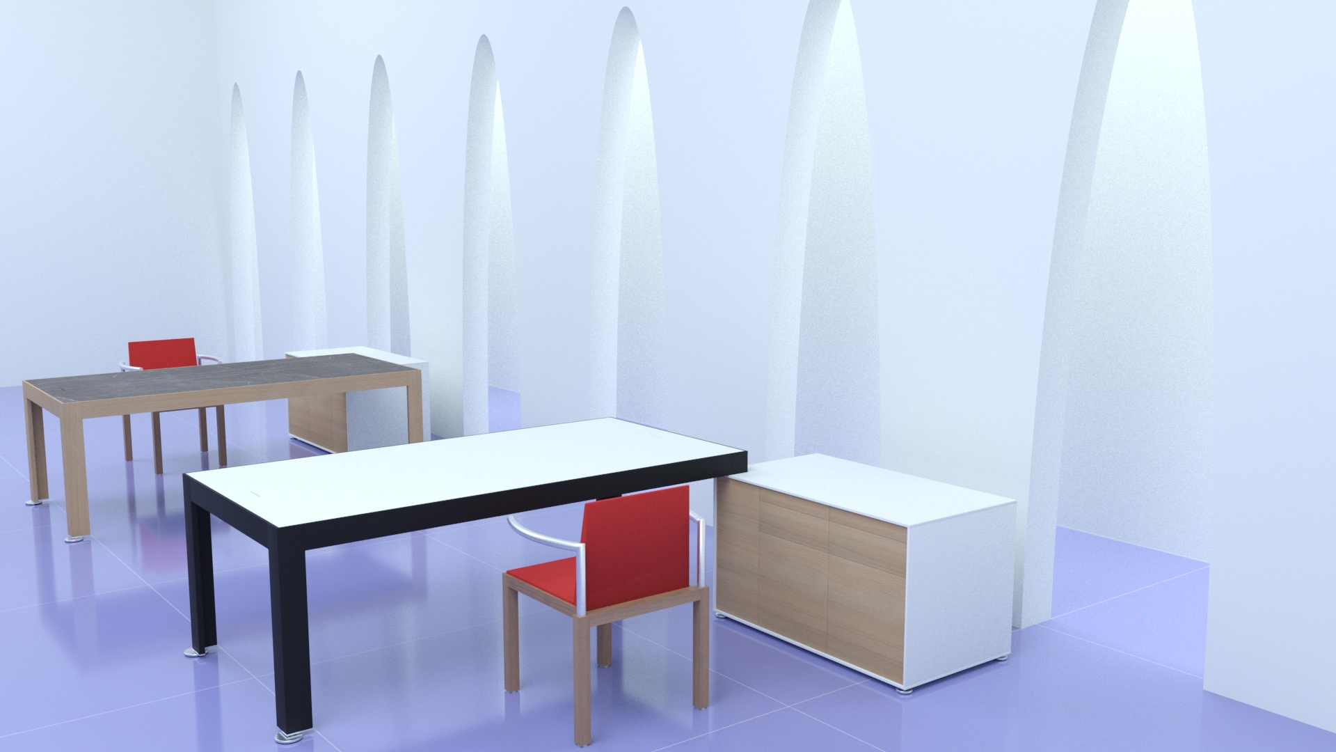 Dalle avec ses tables, ses sièges, ses rangements...la ligne idéale pour créer ou répondre à un environnement de plénitude, de calme, de réflexions et de décisions.